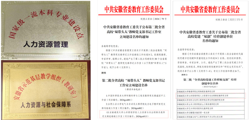 通过多年滚动发展,本专业初步形成了“思想觉悟好、教学能力好、学历层次好、年龄结构好、综合素质好、团队氛围好”的“六好”教学团队。现有专业教师18人,其中教授5人、副教授6人、讲师7人,拥有省级最美教师1人,省级教学名师4人,省级教坛新秀3人,学校师德标兵2人,80%以上具有博士学位,毕业于中国社会科学院、中国科学技术大学、浙江大学、华东师范大学等著名院校,3人有海外留学经历。3位老师荣获安徽省青年教师教学竞赛一等奖等省级赛事奖项,7位老师荣获学校教学创新比赛一等奖等校级赛事奖项。