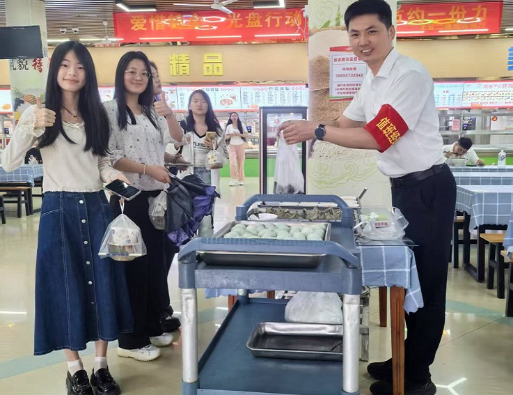 5月30日和31日,学校食堂分别开展全荤菜半价活动和免费送粽子、咸鸭蛋活动。活动期间,学校各食堂大灶窗口分别推出了一道全荤半价菜,如红烧肉、回锅肉、酸菜鱼、红烧鸡腿等菜品,吸引了众多学生前来选购。端午节当天,工作人员早早地准备好了已经煮熟的粽子和咸鸭蛋,在师生们就餐时免费赠送,作为节日的温暖和祝福,传递给大家。(作者:程少聪;一审:陈委婕 二审:韩小霞 三审:唐黎)