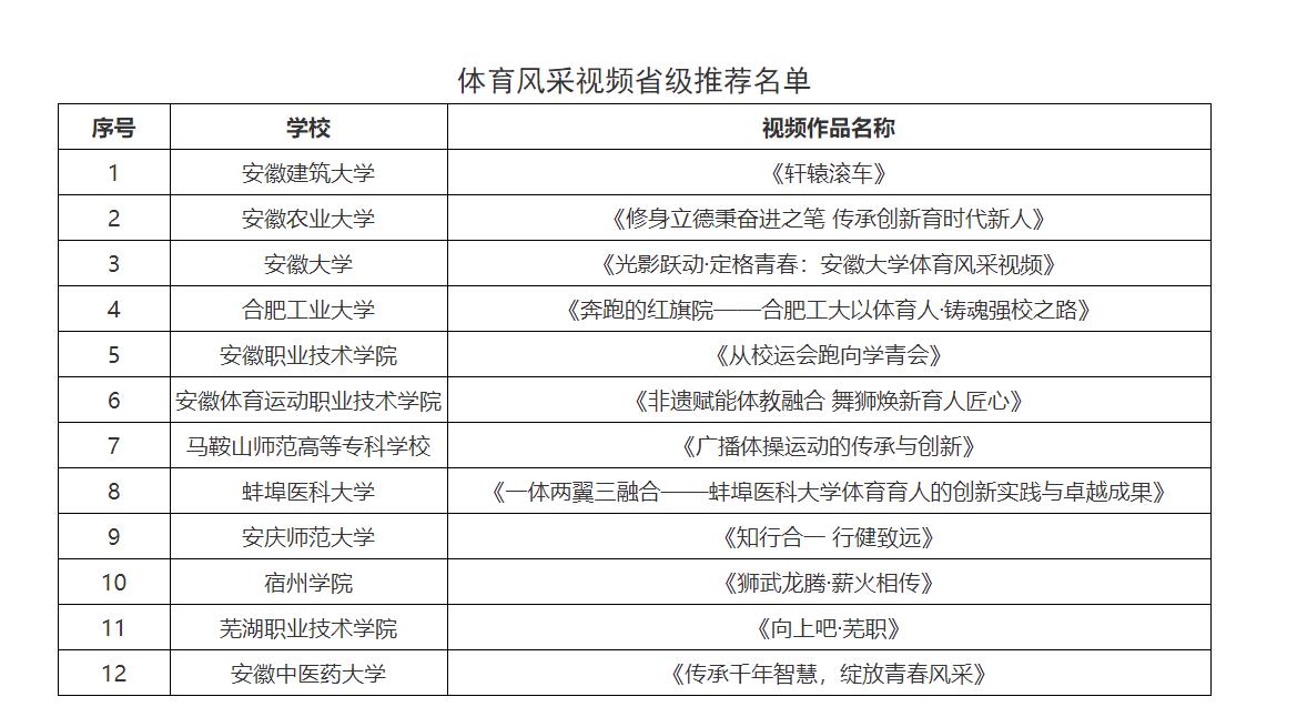 本网讯  根据《安徽省教育厅关于转发教育部宣传教育中心组织开展高校体育风采视频和典型案例征集展示活动的通知》要求,体育教学部代表学校制作拍摄的作品《轩辕滚车》经评选、审定后,被安徽省教育厅作为省级高校体育风采视频优秀作品推荐给教育部。