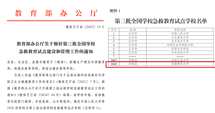 试点周期为两年,自2025年6月起至2027年6月止。学校将按照《第三批全国学校急救教育试点工作指南》,以提升学生健康素养为核心,以普及急救知识和技能为重点,以提升校园应急救护能力为目标,推动校园内急救设施配备,加强师生急救教育,开展志愿服务,全面提升师生急救素养,切实保障师生生命健康安全。(作者:王丽;一审:陈委婕 二审:韩小霞 三审:唐黎)