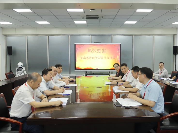 本网讯 6月13日,省委教育工委书记、省教育厅厅长钱桂仑、省教育厅副厅长刘业勋、省教育招生考试院院长沈滔、副院长张连富一行来校检查指导2025年安徽省普通高考数学科目网上评卷工作。学校在紫云路校区徽习楼103会议室举行座谈会,校党委书记马文革,校党委副书记、校长蔡国军,校网评办、学科组等相关工作组负责人参会。