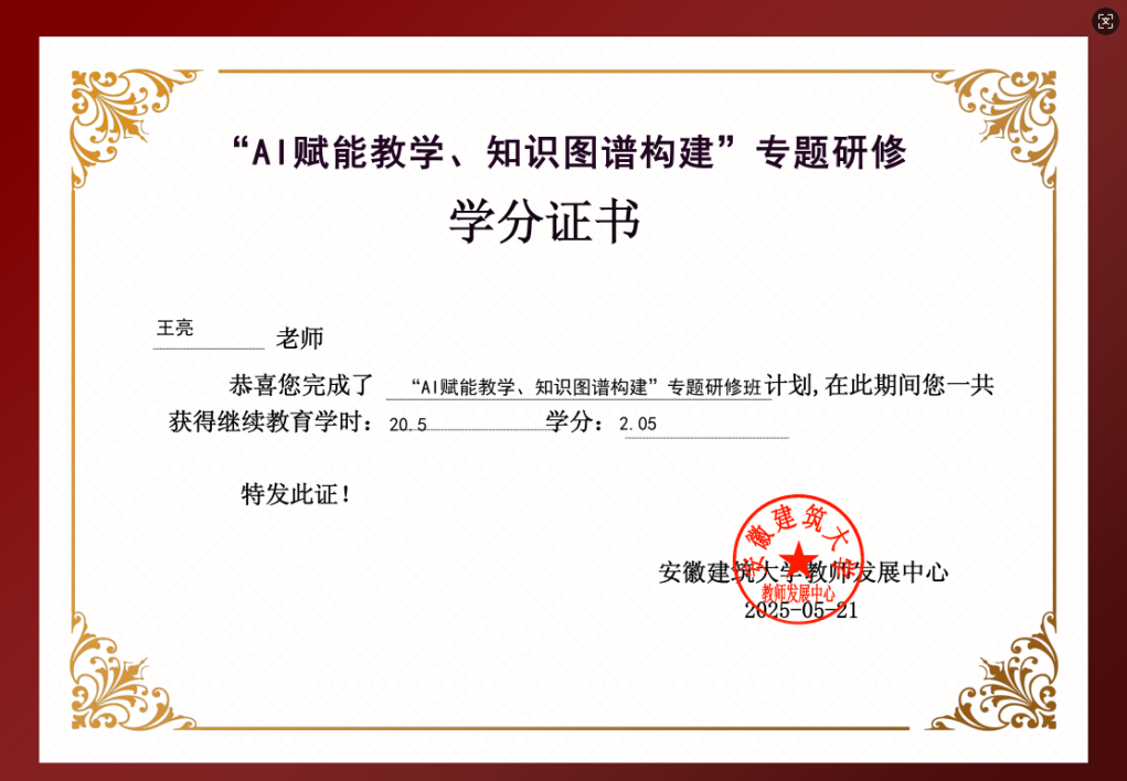 本次AI赋能教学培训取得丰硕成果,各教学单位结合学科特点,探索AI技术在课程设计、课堂互动、学习评价等方面的创新应用,形成了一批具有示范价值的优秀案例。下一阶段学校将进一步落实立德树人根本任务,把加强教师队伍建设作为建设教育强国最重要的基础工作来抓,深入学习《教育部办公厅关于组织实施数字化赋能教师发展行动的通知》精神,大力实施教师数字素养提升行动、数字赋能教育教学改革行动、教师发展模式数字转型行动、教师发展数字资源供给行动、教师发展数字治理行动、数字教育教师国际合作行动,持续推进AI技术与教育教学的深度融合,加强教师数字化能力培养,为学校高质量发展注入新动能,全力打造新时代建筑类高校数字化转型标杆。(图/文:徐洁;一审:范晨晨;二审:胡大洋;三审:潘和平)