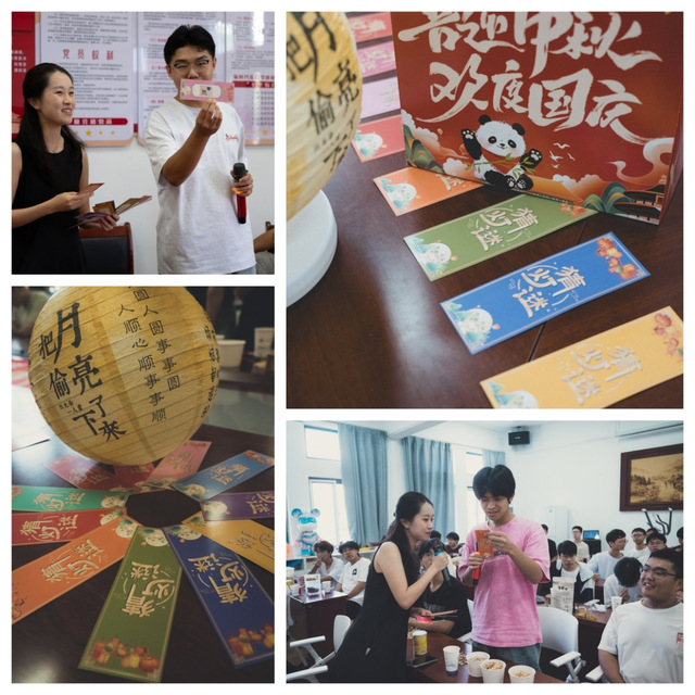 本网讯 为弘扬中华优秀传统文化、共话留校学子的思乡之情,机电学院精心策划“月满中秋,情暖机电”双节同庆活动。留校学子在手作月饼、猜灯谜、茶话会、暖心视频的愉快体验中共话团圆。