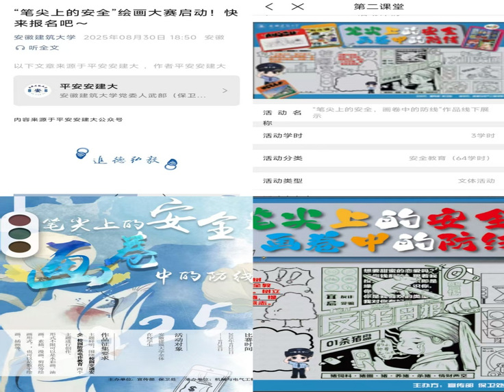 保卫处承担了活动的总体策划与协调工作,主动对接社区民警部门,力求汇聚专业力量,将权威、实用的安全知识以更生动、更贴近学生的方式传递给全校师生;党委宣传部充分发挥宣传优势,利用新媒体平台等渠道对活动进行了全方位、多角度的预热宣传,确保了活动的知晓度与参与面;机电学院则凭借其工科与美育相结合的特色,具体承办了作品的征集、整理与初选工作,为大赛的顺利开展提供了坚实的执行保障。